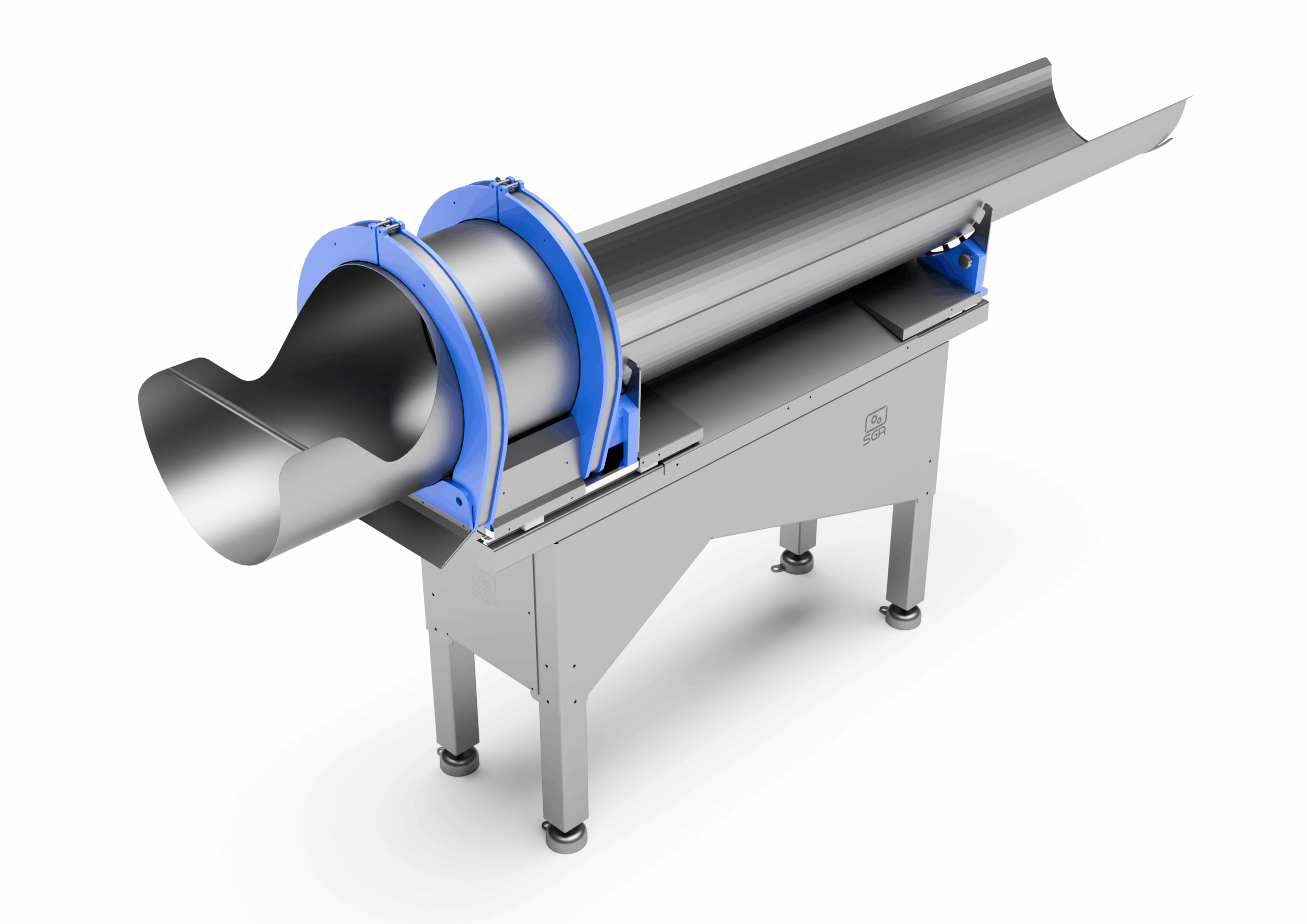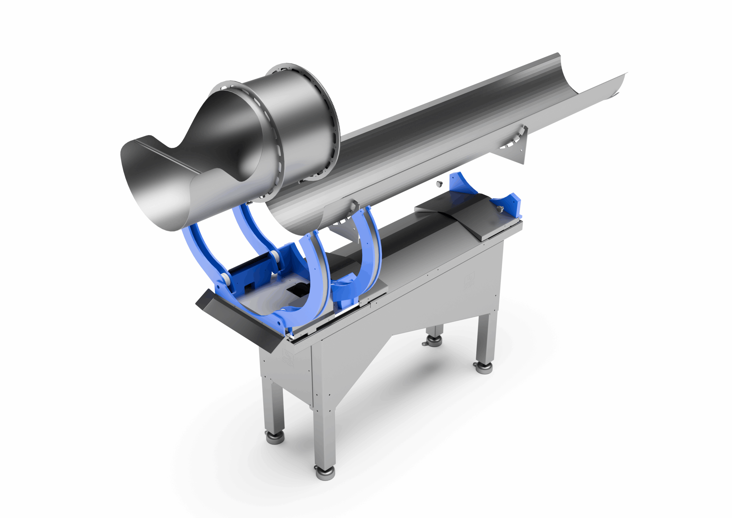 Este sistema puede incorporar una compuerta dosificadora automática, capaz de distribuir el producto en distintas direcciones, adaptándose a las necesidades de cada línea. Las posiciones de descarga se regulan de forma inteligente para garantizar un reparto equilibrado del flujo.
